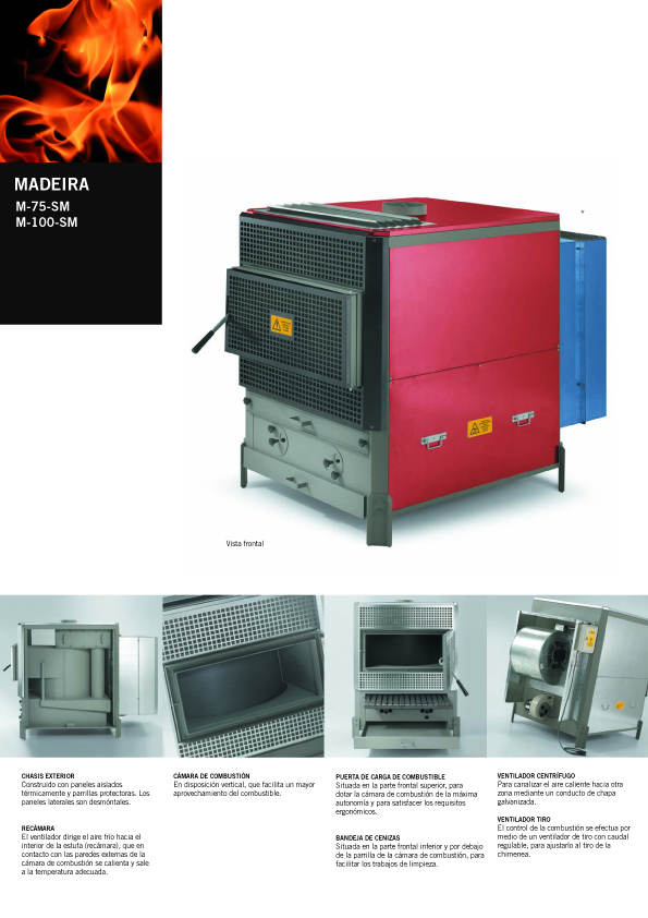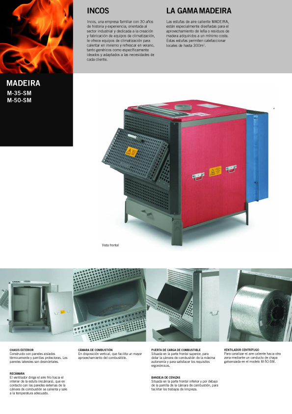 Las Madeira son Estufas especialmente diseñadas para el aprovechamiento de residuos de leña procedentes de fabricación que se podran transformar en aire calient para la calefacción ambiental.